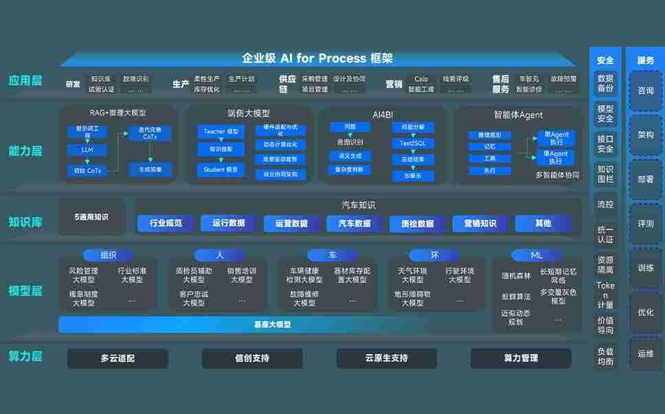 豪门国际问学智车解决方案是一套基于AI技术的汽车行业智能化系统,,,覆盖从底层算力到顶层AI应用的全栈方案。。方案由算力层、、、、模型层和应用层组成:算力层,,方案支持多种一体机配置,,具备云端灵活部署、、多云适配以及动态优化计算资源的能力;模型层,,,豪门国际问学平台版提供了企业级AI应用一站式构建与管理平台,,支持基于后训练强化技术的汽车企业专属模型的训练、、、评测和运营;应用层,,豪门国际问学DeepSeek版提供包括超级员工、、智能招采、、、、智能营销、、、智能客服、、AI for BI等一系列解决方案,,,可助力汽车行业实现数字化转型,,,让管理更智能、、、、响应更敏捷。。。